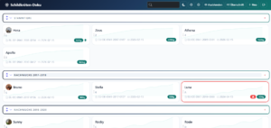 - Übersicht — Tabelle aller Tiere, sortiert nach Alter